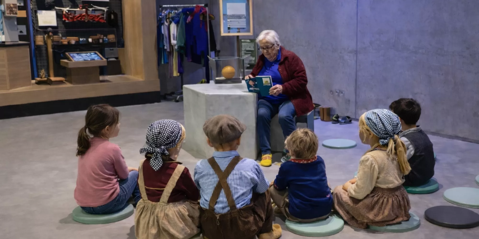 Wat is er fijner dan voorgelezen te worden ? Bij een bezoek aan het museum in de vakantie kan je tussen 13 en 15 uur luisteren naar mooie verhalen. Het is gratis en je hoeft je niet aan te melden, er zijn kussentjes genoeg.