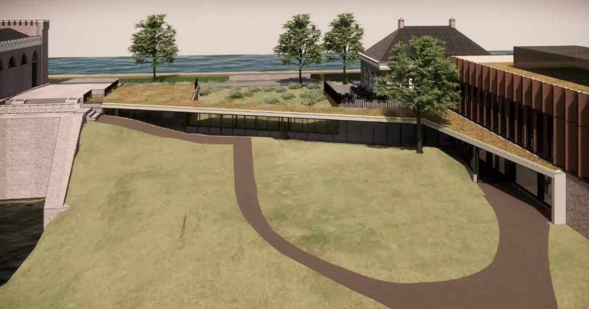Het nieuwe museumpaviljoen naast Gemaal De Cruquius is inmiddels klaar. Hierin vertellen we u - en al die andere geïnteresseerden - over de geschiedenis van Haarlemmermeer en hoe komende generaties droge voeten kunnen blijven houden in deze polder. Wat nog mist is de verbindingsgang tussen het Gemaal en het Paviljoen parallel aan de Cruquiusdijk. Deze gang is niet alleen comfortabel voor bezoekers, maar geeft ons de kans te vertellen over dijken, klimaatontwikkeling, leven onder NAP en Nederland Waterland.