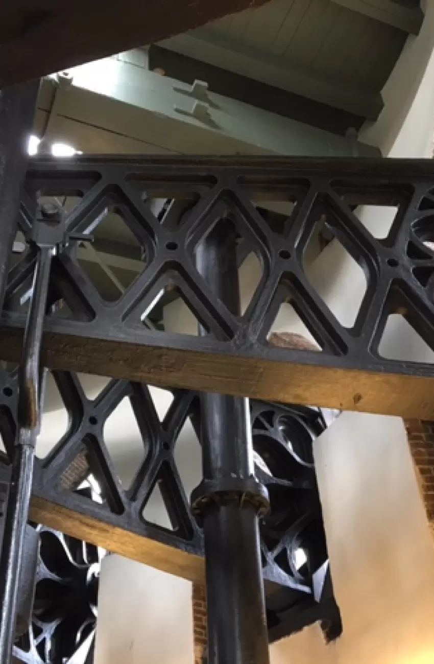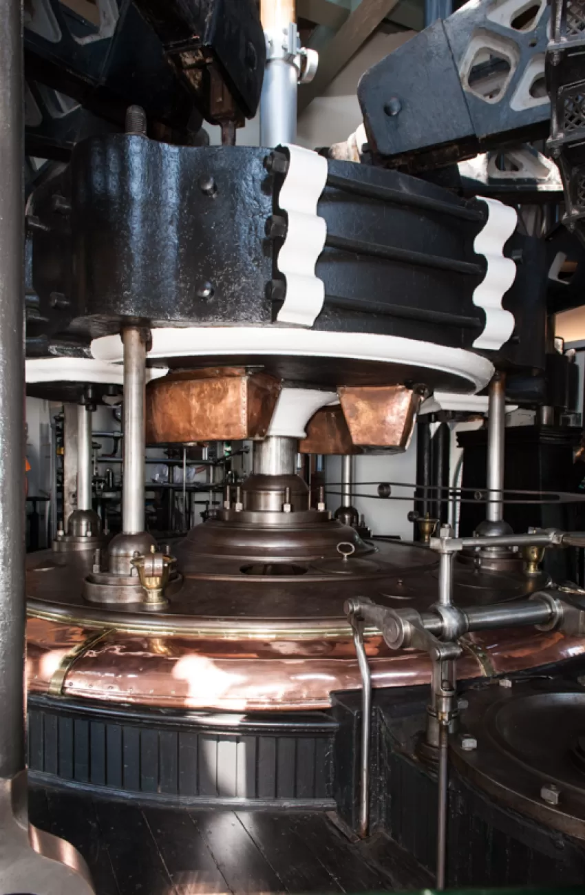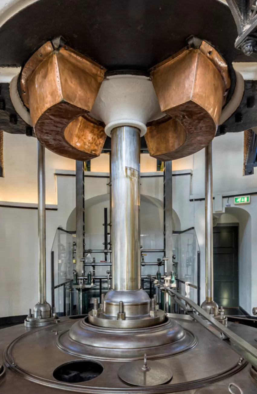 Het op en neer bewegen van de zuiger in deze cilinder gebeurt nu met een modern hydraulisch systeem voor alle bezoekers. Een onvergetelijke ervaring.