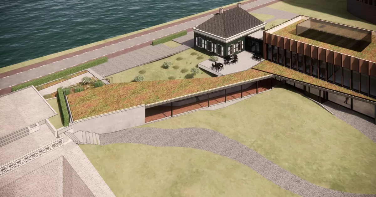 Het onderwerp Nederland onder zeeniveau is actueler dan ooit door de klimaatcrises en het stijgende zeewaterpeil. Een deel van dit verhaal is te zien in het nieuwe paviljoen in een interactieve poldermaquette en in een animatie van Niels Mud.